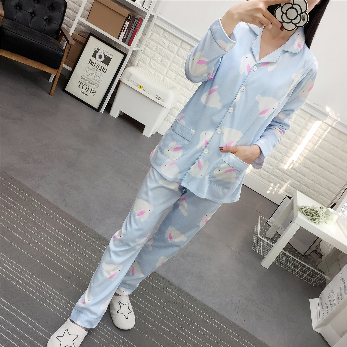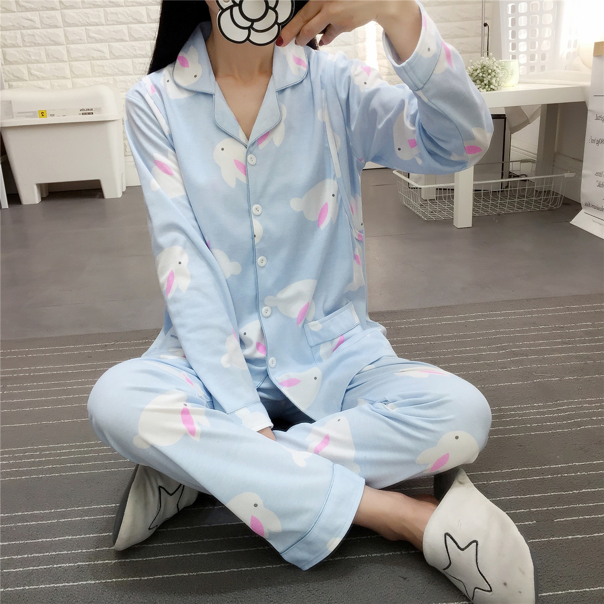 Postpartum Cotton Pajamas Set for Nursing Mothers